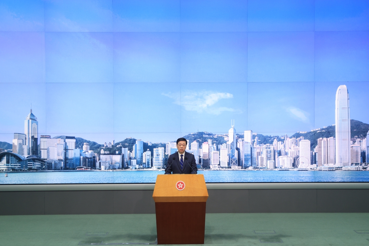 (香港中通社記者 許其皓攝) 李家超又指,他早前外訪東盟和中東取得不少實際成果,包括已有香港企業在當地經營氫能汽車、節能環保、城市設計及酒店等業務,而此次論壇亦首次設有中東專場,政府會聚焦開拓東盟及其他新興市場的機遇。 此外,李家超亦對特大暴雨的善後工作進行總結。他指,昨天周一是暴雨後第一個上班、上學日,市民的日常生活大致回復正常。而個別地區發生水浸,主因是另一場雨量高達每小時100毫米的暴雨,比黑色暴雨警告的70毫米高出許多。