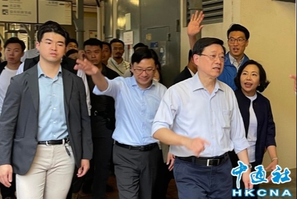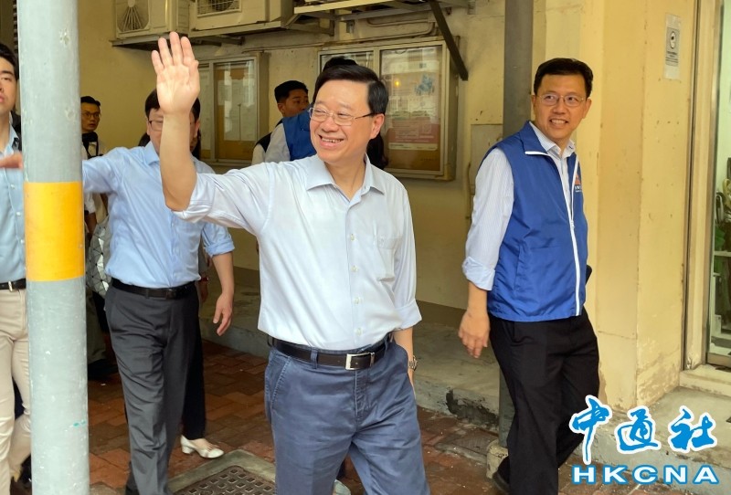 香港中通社9月15日電 題:特寫:李家超雨中落區 與街坊頻互動即場考小童英文 香港中通社記者陳卓儀 陳偉根 經歷一場世紀暴雨以來,香港連日仍陰雨不停。特區行政長官李家超15日在雨天落區探訪,短短一個多小時,他探訪長者、與街坊傾談,路上還考起放學的小童。雨後的社區,歡笑聲如陽光灑落。 這是李家超為任內第二份施政報告首次落區,自然引起本地媒體極大關注。中通社記者當天下午一點半到場,現場所見大小機器已經開始架設,本地電視台甚至派出兩隊人員,兼顧現場直播和跟訪。