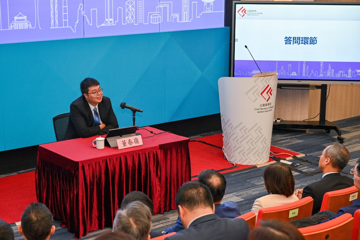圖為主講的總體國家安全觀研究中心辦公室副主任董春嶺在答問環節回答提問。香港公務員事務局網站圖片 董春嶺在講座上透過分享大國興衰的案例和規律、中國特色國家安全道路的基本特點等,讓公務員從歷史角度理解國家安全對國家興衰發展的重要性。 公務員學院院長郭蔭庶在講座致辭時強調,香港特區公務員必須深入了解總體國家安全觀這個國家戰略背後的邏輯和理據,也要從歷史中學習國家安全對國家發展的重要意義,這樣才能在自身工作中發揮積極作用,自覺主動承擔保障香港、維護國安的重任。 約200名特區政府人員參與講座,包括中高級公務員及政治委任官員,當中部分人員透過視像形式參與。 整個講座系列共有七講,主題涵蓋世界經濟巨變、科技發展對維護國家安全的機遇與挑戰等,全面及多角度分析總體國家安全觀的發展脈絡、主要內容、維護國安面對的挑戰和對國家發展的重要性。各講座均由總體國家安全觀研究中心或中國現代國際關係研究院的專家主講。(完) 【編輯:馬華】