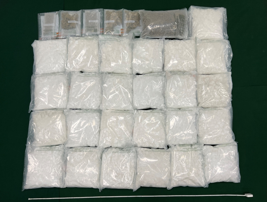 圖片來源:政府新聞網 根據情報分析,海關於葵涌截查一名33歲男子,並帶他到附近住宅單位搜查,在單位內檢獲約100公斤氯胺酮、約1.1公斤大麻花,以及一批毒品包裝工具。其後,海關人員再押解他到附近另一個住宅單位進行搜查,並在單位內再檢獲約300克懷疑大麻花。 根據《危險藥物條例》,販運危險藥物屬嚴重罪行,一經定罪,最高可被判罰款500萬港元及終身監禁。(完) 【編輯:崔靜雯】