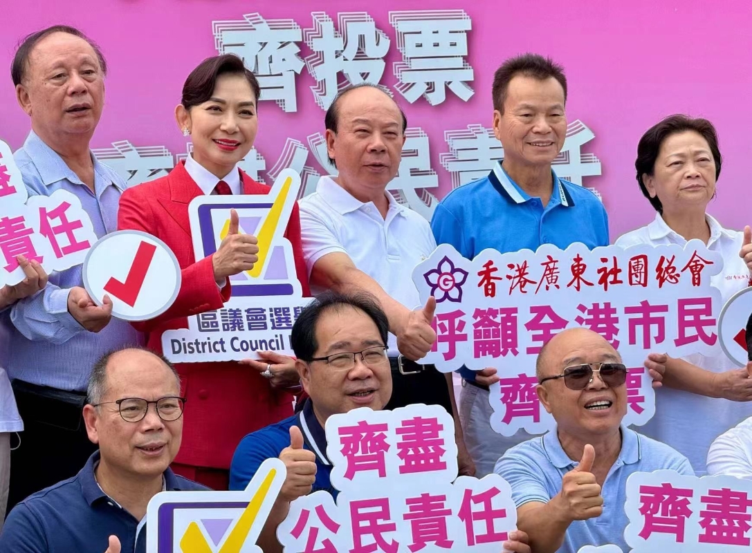香港廣東社團總會近20名代表出席動員大會。港區全國人大代表、香港廣東社團總會常務副主席鄺美雲認為,是次區議會選舉競爭激烈。她表示,要落實“愛國者治港”原則,需在愛國愛港者中選出最優秀的人才。她期望大家努力爭取選民支持,並呼籲選民積極投票。