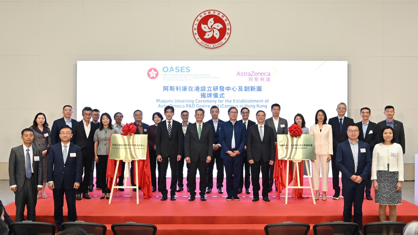 圖示陳茂波(第二排右七)、阿斯利康全球執行副總裁、國際業務及中國總裁王磊(第二排右六)、引進重點企業辦公室主任容偉雄(第二排右八),以及其他嘉賓合照。香港特區政府新聞處圖片 當天,香港特區政府引進重點企業辦公室與阿斯利康在政府總部進行揭牌儀式,由財政司司長陳茂波,引進辦主任容偉雄,阿斯利康全球執行副總裁、國際業務及中國總裁王磊主持並致辭。 陳茂波表示,研發中心將是香港首個由全球前十大藥企建立的研發中心,專注細胞治療、基因治療等重點領域的藥物研發,相信能為區域醫藥研發注入新動能。阿斯利康也會在港設立孵化平台,構建更蓬勃的醫療創新生態圈,帶動上中下遊相關企業來到香港。 王磊表示,會進一步擴大在香港的研發布局,在香港多做臨床研究,支持內地新藥在香港和內地獲批後上市。“香港的專家和科研人員是世界級的,交流是沒有障礙的,在國際舞台上的活躍程度非常好,我們將利用好這個優勢。” 王磊在儀式後接受傳媒訪問時表示,阿斯利康作為香港最大醫藥企業,是要引領各個治療領域的創新,希望把最好的治療帶給香港患者,又通過香港把最好的治療帶給內地,把最好的中國治療帶給全世界,發揮香港特區科創、貿易、金融中心的優勢,達到雙向的作用。 他亦透露,阿斯利康將打造阿斯利康中金醫療產業基金,會向香港金融方面募集數億美元基金,投資、孵化及服務香港科創企業。 阿斯利康是一家大型英瑞合資生物制藥企業,公司研發、制造及銷售用於治療心血管、腫瘤、中樞神經、呼吸系統疾病以及用於麻醉的藥物和疫苗,包括新冠疫苗。(完) 【編輯:馬華】