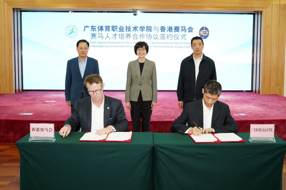 圖片來源:賽馬會。 馬產業的發展依賴人才的培養。在當日會議上,香港賽馬會還與廣東體育職業技術學院簽署了賽馬人才培養合作協議。雙方將合作開辦運動訓練專業賽馬方向訂單班,面向15至16歲初中畢業、有潛質成為見習騎師或策騎員學員的內地學生。課程不僅涵蓋騎術、馬厩管理、馬術、運動科學等賽馬行業必備知識和技能,更融入全人教育的元素,培養德才兼備的體育人才。該賽馬方向訂單班所定位的是雙軌制培訓系統學歷及職業教育,每年招收15至25名學生,學生畢業後將取得公辦大專層次學歷及香港資歷架構第三級別賽馬證書課程資格。此外,廣東體育職業技術學院的在讀學生如有意願加入賽馬人才培訓計劃,經選拔後可參加相關課程學習。 香港特區政府環境及生態局(食物)常任秘書長劉利群表示,期待廣東體育職業技術學院與香港賽馬會未來的合作能促進粵港馬產業人才的專業發展,為大灣區青年提供更多就業和發展機會。 香港賽馬會賽馬事務執行總監夏定安在出席簽約儀式時表示,這次簽約標志著賽馬人才的培養取得了裡程碑式的進展。他指,人才培養是《粵港馬產業發展合作協議》中強調的重點合作領域之一。香港賽馬會與廣東體育職業技術學院通過校企合作的方式,將馬產業融入教育當中,培養、儲備未來的賽馬人才,推動內地馬業可持續發展。 香港賽馬會公司事務執行總監譚志源表示,感謝兩地政府對粵港澳大灣區馬產業發展長期以來的大力支持。香港賽馬會很高興看到兩地政府建立起馬匹跨境運輸協調機制,并原則上同意建立新的生物安全通道。這兩項措施將保障未來馬匹跨境運輸的安全與順暢。香港賽馬會一直發揮所長,通過其專業知識、豐富經驗和國際網絡,為大灣區以至國家馬產業發展做出貢獻。目前,除了人才培訓外,香港賽馬會還在積極推進多個馬產業鏈的項目,包括廣州從化國際賽馬發展中心、獸醫專業發展等,以期為實現大灣區世界級馬匹運動及產業中心的共同願景,貢獻自己的力量。 2021年5月,廣東省和香港特區政府簽署了《粵港馬產業發展合作協議》,在粵港合作聯席會議下設立粵港馬產業合作專責小組。香港賽馬會以港方專家成員的身份參與小組工作。該協議簽署的同一天,香港賽馬會與廣州市政府亦簽署了《關於共同促進穗港馬產業發展的框架合作協議》,從三方面落實馬產業發展,包括:實現從化馬場常規性的國際水平賽事計劃,提升從化馬場的硬件設施和營運接待能力,全面推動馬產業鏈的發展。(完) 【編輯:崔靜雯】