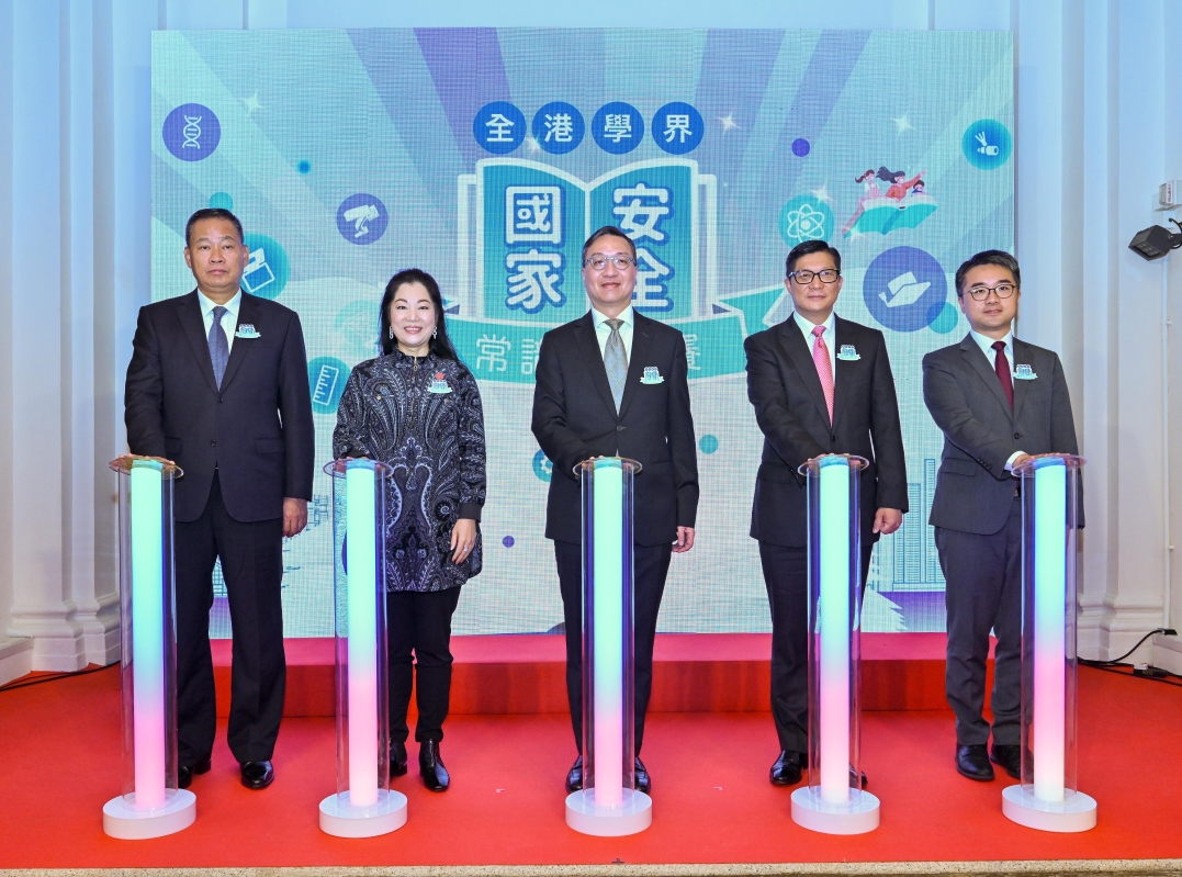 圖片來源:香港政府新聞網。 特區行政長官李家超在視像致辭表示,期望同學通過參與這次比賽,更深入理解香港國安法及總體國家安全觀,同時學習憲法與基本法的知識,並將比賽的所學、所感,分享給家人和朋友,成為國家安全教育的推動者,為維護國家安全作出積極貢獻。他亦呼籲各界全力支持基本法第23條的立法工作,以履行特區的憲制責任,以及維護國家安全的公民責任和義務。 特區政府律政司司長林定國主禮時指出,國家安全是安邦定國的基石,市民尊重和遵守國安法律,不單是法律責任,亦是應有之義。同學們在求學時期認識國家安全的重要性和緊迫性,可以及早培養國民身分認同,以及正確理解我們的公民責任。 一同主禮的保安局局長鄧炳強致辭時表示,特區政府一直在國安教育方面推陳出新,這次比賽是結合律政司的專業法律知識、教育局的學校和學生網絡,以及香港善德基金會舉辦校際比賽經驗及其資源作新嘗試,期望能將國安教育做得更深入,覆蓋面更廣。 教育局副局長施俊輝致辭時表示,網上初賽參與的學生人數創新高,有超過102000名來自585所中、小學的學生參與,足見學界對推動國家安全教育的重視和支持。 港學界國家安全常識挑戰賽以問答比賽形式進行,分為小學組及中學組,設有隊際賽及個人賽,當中隊際賽有54間中、小學校出線半準決賽,角逐冠軍寶座。(完) 【編輯:崔靜雯】