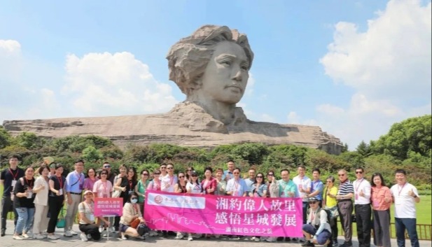 香港特區政府新聞處圖片。 團員同日到位於長沙橘子洲景區的海關公廨參觀長沙關近代歷史陳列館,了解長沙的開埠歷史和長沙海關設立所帶來的影響與變遷。此外,團員亦在園區觀賞了毛澤東青年藝術雕塑及璀璨的長沙夜景。 陳子達昨日(十二月二十日)帶領考察團到毛主席出生地韶山,並在毛澤東銅像前獻花和肅立,默哀致敬,以紀念毛澤東主席誕辰130周年。考察團及後走訪毛澤東主席故居及遺物館,深入認識他的生平事蹟,提升他們的民族自豪感。