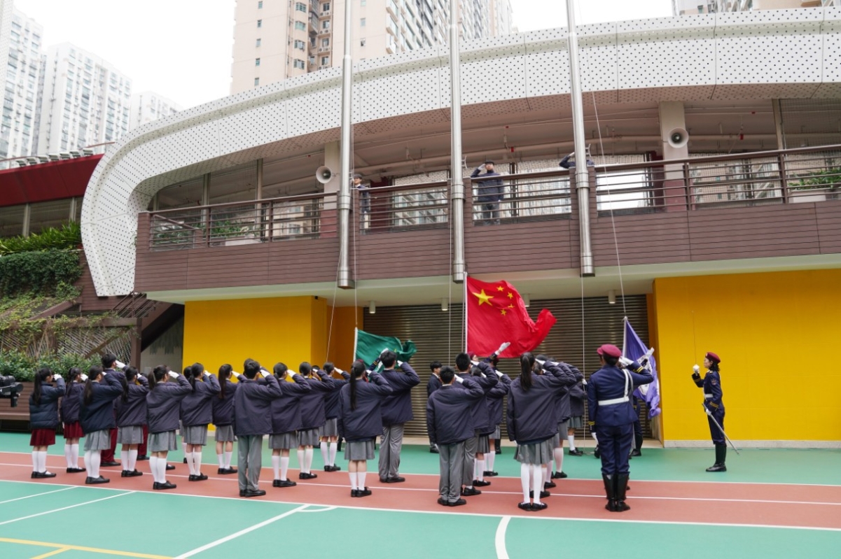圖片來源:澳門新聞局。 雙方其後在該校的大禮堂開展交流。儀仗隊通過講解國旗文化知識和介紹隊伍等方式,向學生宣傳國家安全的觀念,弘揚國旗文化和愛國愛澳精神。他們也介紹了國旗、儀仗指揮刀等重要儀仗用具,並指導學生體驗擎旗、持指揮刀等動作。 參與的活動澳大附校學生表示,看著國旗冉冉升起感到非常自豪,同時對聯合升旗模式感到新奇,期間加深了對國旗文化的興趣,對愛國愛澳精神也有了更深的體會。(完) 【編輯:崔靜雯】