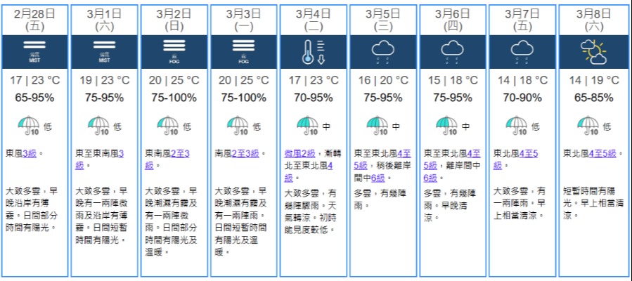 香港新聞網1月31日電 香港天文台31日表示,下周初仍然潮濕。農曆新年前氣溫顯著下降。