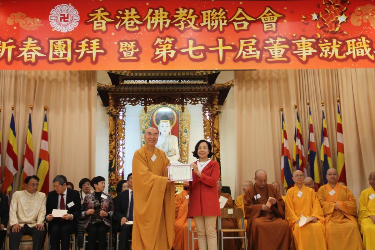 香港新聞網2月17日電 香港佛教聯合會今日(17日)在香港佛教聯合會文化中心舉行“甲辰年新春團拜暨第七十屆董事就職典禮”。民政及青年事務局局長麥美娟、中央政府駐港聯絡辦協調部副部長陳澤濤出席典禮,為佛聯會新一屆董事監誓及頒授證書。