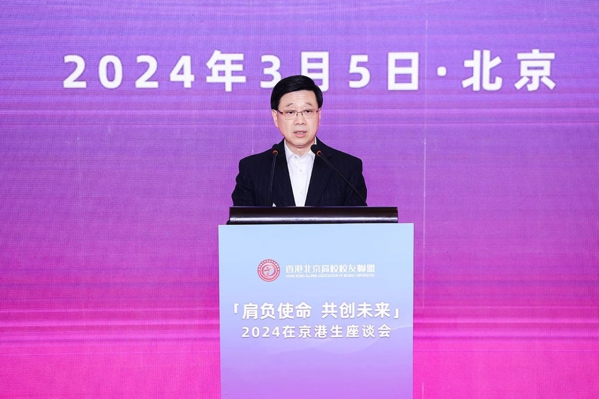 京校聯成功舉辦“肩負使命 共創未來”2024在京港生座談會香港新聞網3月6日電 3月5日,由香港北京高校校友聯盟主辦的“肩負使命 共創未來”2024在京港生座談會在北京舉辦,香港特別行政區行政長官李家超、北京市委常委、統戰部部長楊晉柏,北京市政協黨組副書記、副主席崔述強,以及京港兩地有關部門領導出席座談會,和來自11所高校不同專業領域的24位在京學習的香港青年座談交流,瞭解他們的學習和生活情況。