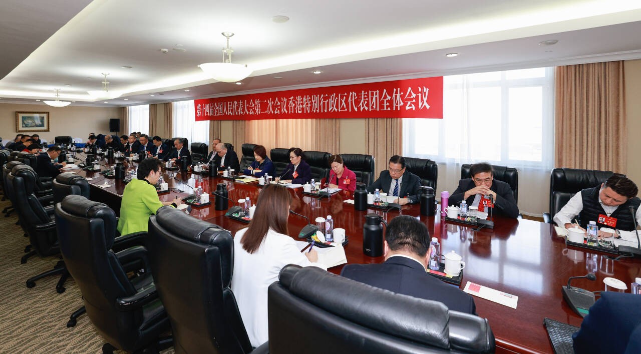 香港代表團舉行全體會議。中聯辦圖片 連日來,香港代表團審議認真,氣氛熱烈,先後審議了政府工作報告、審查了計劃報告和草案、預算報告和草案、審議了國務院組織法修訂草案。在今日下午的審議中,有21位代表積極發言,就學習貫徹習近平總書記重要講話精神、落實丁薛祥副總理的指示要求談認識、談體會,並分別就如何鞏固提升香港國際金融中心地位、加強愛國主義教育、推進粵港澳大灣區建設等提出意見建議。 (完) 【編輯:陳偉根】
