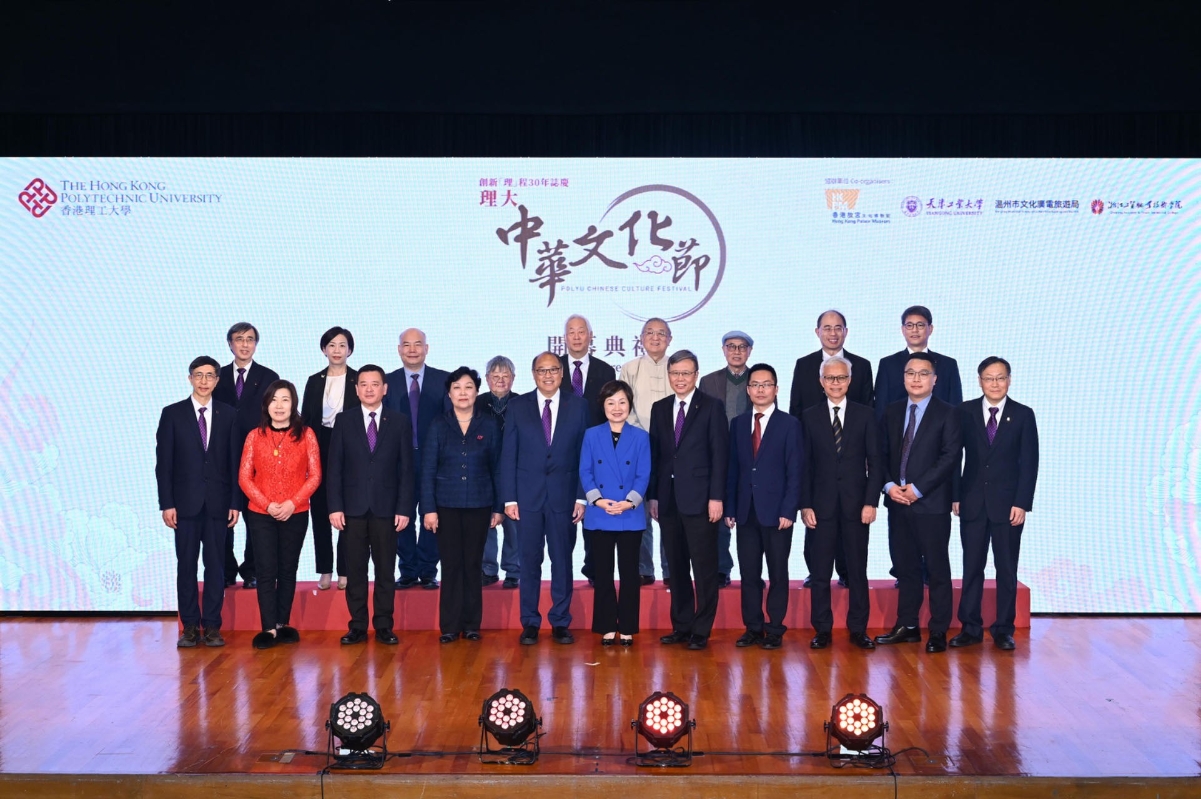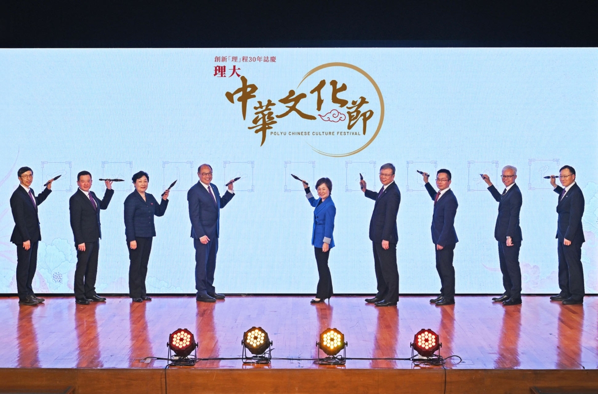 香港理工大學供圖 作為理大正名大學三十周年誌慶活動之一,理大中華文化節開幕典禮於今天舉行,教育局局長蔡若蓮博士擔任主禮嘉賓,並聯同理大校董會主席林大輝博士、校長滕錦光教授、副校長(學生及環球事務)楊立偉教授及人文學院院長李平教授,以及協辦機構代表包括天津工業大學黨委書記沈江女士、浙江工貿職業技術學院校長余闖教授及香港故宮文化博物館館長吳志華博士等,一同主持活動啟動儀式。 蔡若蓮博士表示,高等教育是優秀文化傳承的重要載體和思想文化創新的重要源泉, 是維繫國家、民族團結的重要根基;學習、認識、傳承中華文化,可加強青年人的國民身份、文化、民族認同感和自信。二十大報告強調,要增強中華文明傳播力影響力,推進文化自信自強。國家“十四五”規劃亦提出,支持香港發展成為中外文化藝術交流中心。香港理工大學舉辦盛大的中華文化節,並與香港故宮文化博物館、內地院校和不同藝術文化團體共同舉辦豐富多彩的活動,提供了一個難得的平台,促進文化互鑒和交流,助力中外文化藝術交流中心的建設;同時,對加深青少年對中華文化的認識和欣賞,增強國家和文化認同感,提高民族自信,別具意義。