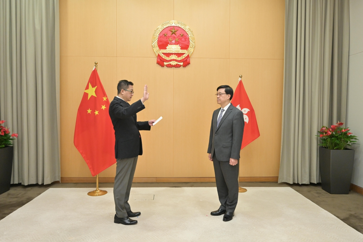 政府發言人說:“新任申訴專員宣誓擁護基本法及效忠香港特區,體現‘愛國者治港’的原則和責任。”  (完)
