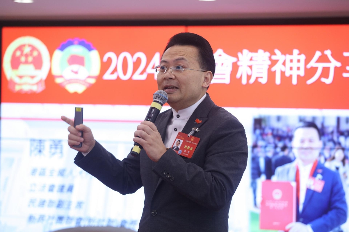 陳勇:中央對港金融中心地位充滿信心 全國人大代表陳勇指出,習近平總書記在兩會期間3次到團組,特別關注了“三新”,即新質生產力、新污染物治理和新質戰鬥力。國家的新質生產力正在成為全球的焦點,相信這將推動國家的高質量發展,助力實現中國式現代化。陳勇續指,國務院副總理丁薛祥在兩會期間分別參加港區全國人大代表團審議及港澳地區全國政協委員聯組會議,期間發表的講話充分顯示中央深入了解香港實際情況,並對香港鞏固和提升國際金融中心地位充滿信心。