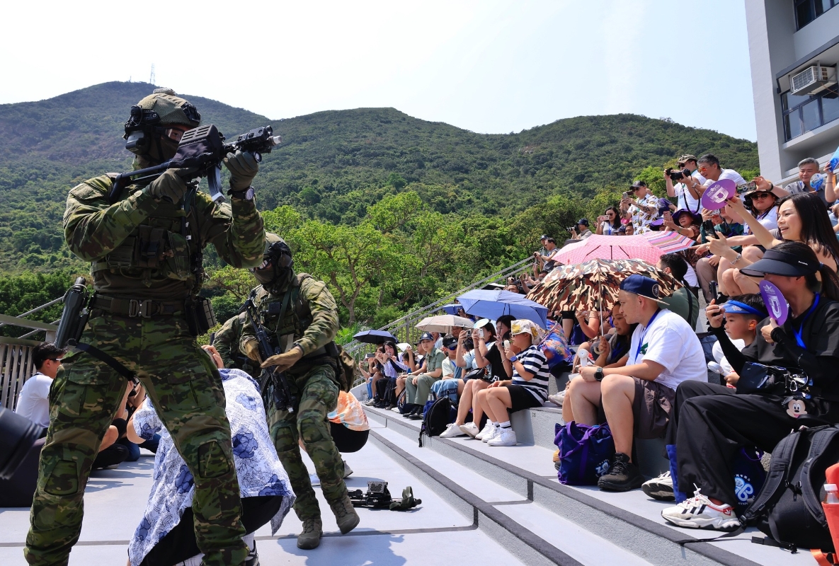 香港新聞網4月13日電(記者 曹文毓)4月13日,香港警務處在香港警察學院舉行“全民國家安全教育日暨香港警隊180周年警察學院開放日”活動,開放日設有“國安守城”、“跨越180”、“警伴同趣”及“專業新警界”四個主題區,並以大匯演揭開序幕,除了音樂表演外,還有駕駛表演、警犬服從表演及由特別任務連(飛虎隊)、反恐特勤隊及無人機隊參與的反恐演練。警隊各單位及兼任職務隊等在現場設置攤位,透過互動遊戲讓市民體驗警隊專業性。