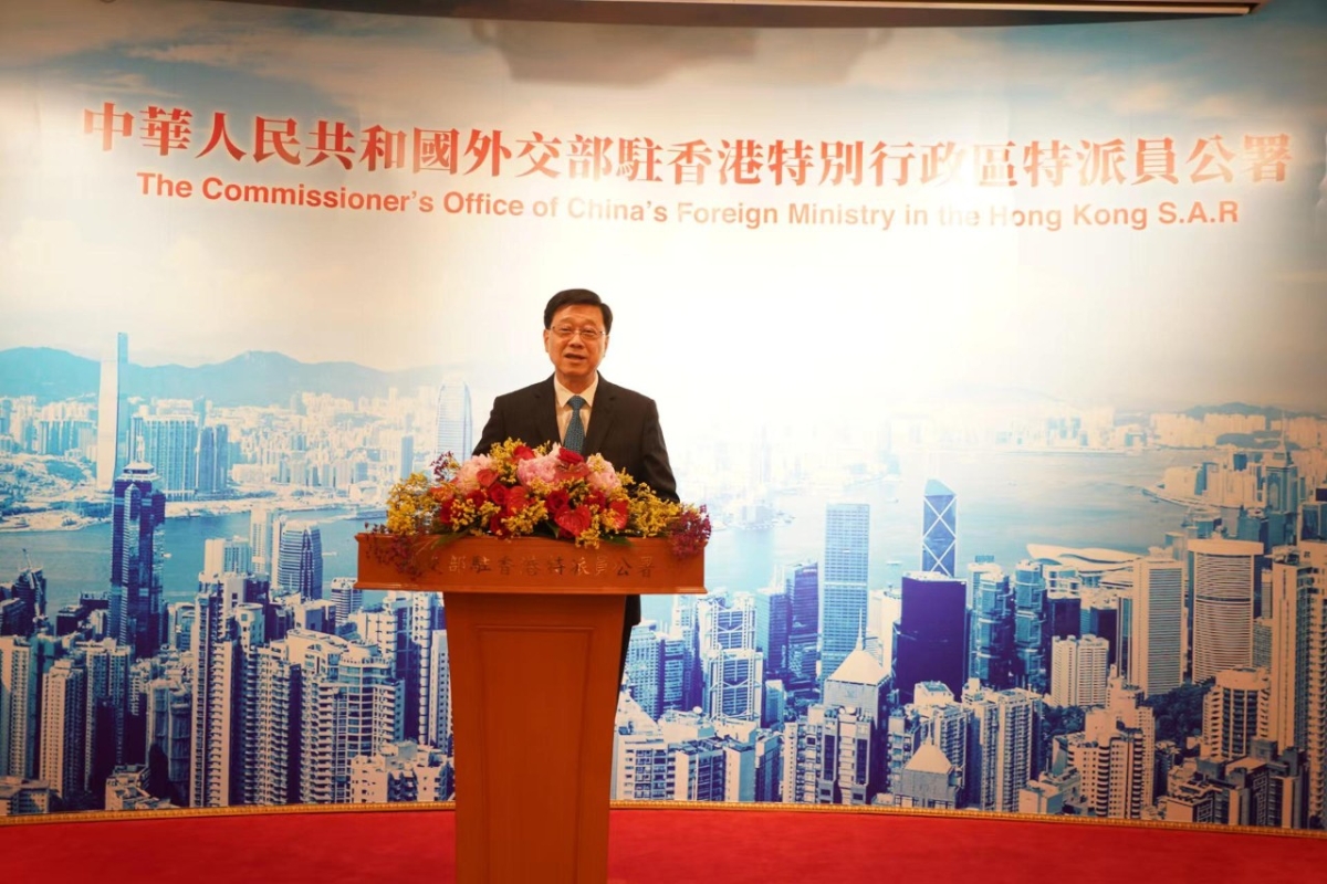 圖源:外交部駐港公署微信公眾號。 李家超行政長官感謝外交部駐港公署長期以來在特區涉外事務、對外交往合作、維護海外港人權益等方面給予特區政府的支持。期待外交公署繼續支持香港融入國家發展大局,鞏固和提升國際化優勢,對外開拓更多發展空間,講好香港“一國兩制”故事。