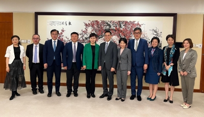 香港中通社5月24日電 香港特區政府文化體育及旅遊局局長楊潤雄率領的香港特區政府代表團,與深圳市鹽田區人民政府區長鄧飛波率領的深圳市政府代表團,24日在深圳舉行對接北部都會區發展策略專班下的沙頭角合作區工作小組第一次會議。