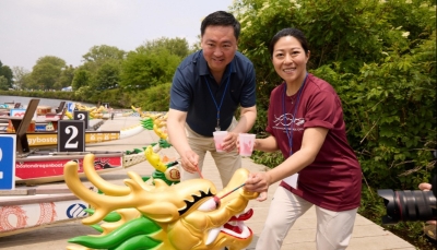 政府新聞處圖片 柏林市盃龍舟賽在一九九九年首次舉辦,規模不斷壯大,促進了香港與德國社群間的友誼。今年有來自德國各地超過1000位參賽者組成的50支隊伍,參加在柏林格呂瑙區的Olympic Regatta Course舉行的賽事。駐柏林經貿辦的職員亦與其他德國和香港選手組成名為“香港乘風破浪者”的隊伍參賽。 駐柏林經貿辦署理處長梁子康在六月十五日舉行的頒獎典禮頒獎予優勝隊伍,並向觀眾介紹香港的慶祝活動。 梁子康說:“香港慶祝端午節的氣氛濃厚。在香港著名的維多利亞港所舉行的國際龍舟邀請賽更是城中年度盛事,每年吸引全球過百支隊伍參賽和觀眾觀賞。我們歡迎大家到訪香港,親身感受香港的活力。” 駐柏林經貿辦亦於賽事場地設置推廣攤位,為觀眾提供更多有關節慶傳統、香港旅遊景點及大型活動的資訊。駐柏林經貿辦是香港特別行政區政府在德國、奧地利、捷克共和國、匈牙利、波蘭、斯洛伐克共和國、斯洛文尼亞和瑞士在商業關係和其他經貿事務上的官方代表機構。 (完) 【編輯:陳偉根】