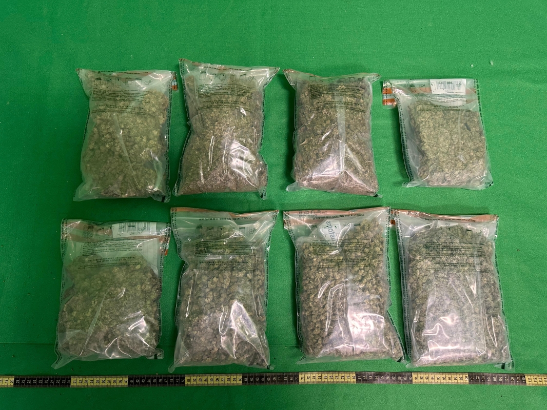 香港中通社圖片 首宗案件涉及一名昨日從泰國曼谷飛抵本港的四十八歲女旅客。海關人員進行清關時,發現一批共重約2.1公斤的懷疑大麻花在其寄艙行李的八包零食包裝內,該名女子隨即被捕。 第二宗案件涉及一名昨日從馬來西亞吉隆坡飛抵本港的三十七歲男旅客。海關人員進行清關時,發現其寄艙行李的三個食品包裝盒內藏有約5.3公斤懷疑海洛英,遂把他拘捕。 兩名被捕人士已各被控以一項販運危險藥物罪,兩宗案件18日在西九龍裁判法院提堂。 隨着訪港旅客人數逐步增加,海關會繼續根據風險管理的原則,重點揀選來自高風險地區的旅客作清關檢查,確保有效打擊跨境販毒活動。 根據《危險藥物條例》,販運危險藥物屬嚴重罪行,一經定罪,最高可被判罰款五百萬元及終身監禁。 (完) 【編輯:陳偉根】