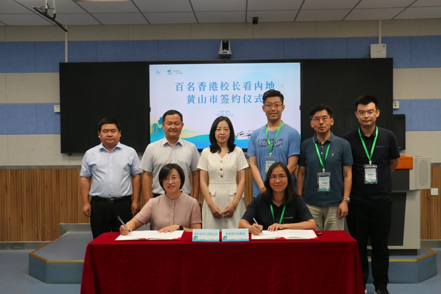 主辦方供圖 21日下午,校長們來到黃山市歙縣中學考察交流,參觀了校園內的歷史古跡“明倫堂”、“三元坊”、“古紫陽書院”坊,康熙禦書“學達性天”、乾隆禦書“百世經師”的匾額和重修歙學的碑記等,并在校內召開了座談會。座談會上,來自香港的校長們與該校的校長和老師圍繞研學旅遊,學生綜合素質培養、特長培養等領域互相交流學習,現場氣氛熱烈,校長們發言踴躍。會上香港萌兒幼稚園和歙縣豐樂示範幼兒園簽署了締結友好學校協議書,香港華暢東方文化國際交流有限公司和黃山市冠江南國際旅行社有限公司簽署了戰略合作協議。