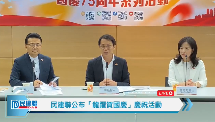 民建聯公佈今年國慶系列活動香港新聞網7月26日電 今年是中華人民共和國成立75周年,為慶祝這個重要時刻,民建聯特別籌辦“龍躍賀國慶”“文娛民生活動”、“培訓學習”、“展覽”及“線上活動”四方面舉辦一系列慶祝活動,希望全方位配合政府及社會營造本地濃厚國慶氣氛及宣揚愛國情懷。民建聯主席陳克勤、副主席陳勇今日舉行記者會,向傳媒簡報活動內容。