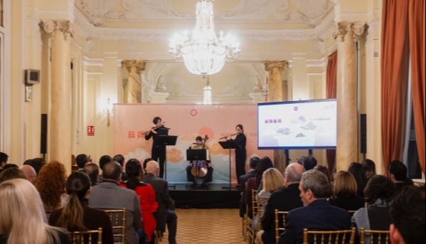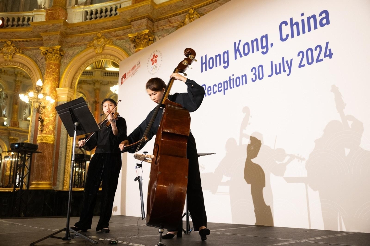 圖源:政府新聞處。 在致歡迎辭時,香港駐歐洲聯盟特派代表翁佩雯強調體育對於聯繫文化和人民的重要性。她亦邀請世界各地的朋友訪港,透過參與各種大型活動體驗多元文化。 中國香港之夜讓賓客感受香港獨一無二東西交匯的文化和本地人才的創意。由香港音樂人陳浩恩(低音大提琴演奏家)與劉君然(小提琴演奏家)組成的弦樂二人組,將膾炙人口的粵語流行曲與西方古典音樂互相融合,奏出和諧之音。