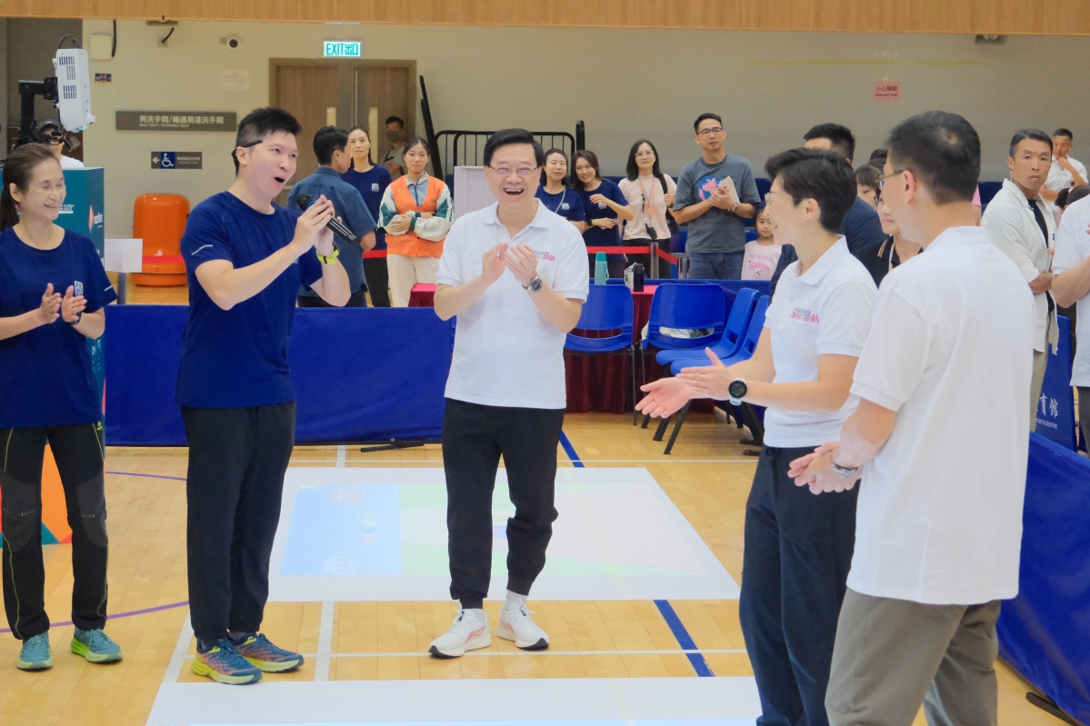 香港中通社8月4日電(記者 陳偉根)4日是香港全民運動日,特區政府康文署免費開放了大多數康樂設施。正值巴黎奧運如火如荼進行中,不少市民表示,受港隊選手的激勵,決定日後多運動。 特區行政長官李家超當日也身穿運動服到東昌街體育館視察,與精英運動員交流,還體驗擲豆袋遊戲,成功擊中多個港隊參與的巴黎奧運項目。