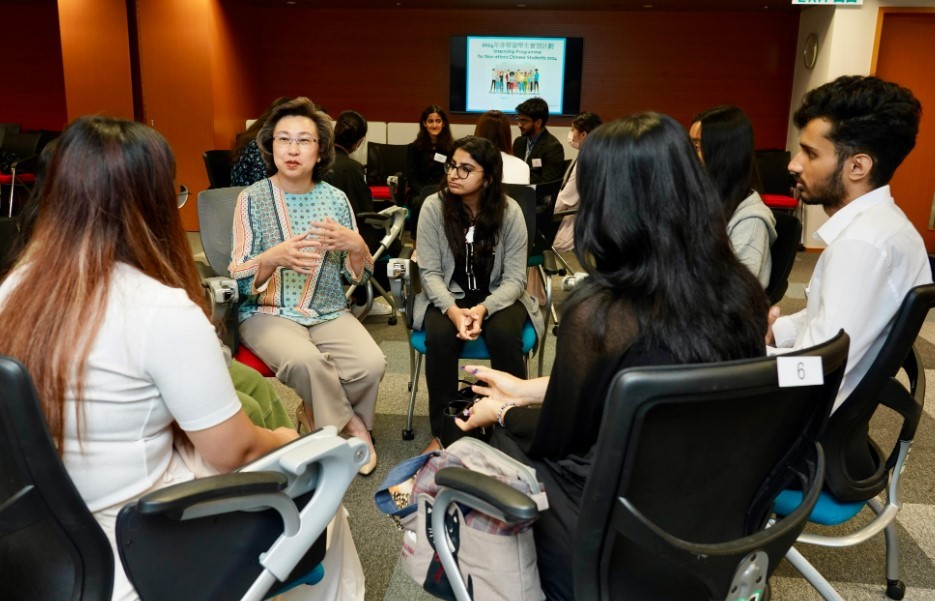 香港新聞網8月12日電 香港特區政府公務員事務局局長楊何蓓茵12日出席非華裔學生政府部門實習計劃分享會,聆聽學生分享實習體驗和得着,了解他們的實習經驗如何啓發未來職業路向,並鼓勵他們為日後就業作好準備。 公務員事務局自2019年起推出為非華裔大學生而設的政府部門實習計劃,以協助年輕的非華裔人士累積工作經驗和提升他們的就業競爭力,並希望實習經驗能加深他們對政府運作的認識。實習計劃推行至今,累計180名非華裔學生參與,包括今年參與計劃的36名學生,獲安排到不同決策局和部門進行約八星期的實習。