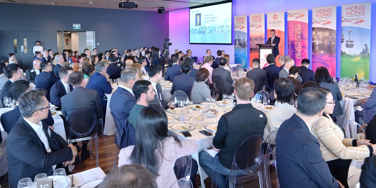 政府新聞網圖片 陳茂波早上出席由滙豐銀行舉辦的圓桌早餐會,與十多位商界、金融服務、綠色金融、金融科技和專業服務等業界的代表會面,分享香港的最新經濟情況和發展方向,並就推動香港和澳大利亞之間的雙向投資、貿易、綠色和可持續金融合作等方面交換意見。他中午出席香港駐悉尼經濟貿易辦事處舉辦的商務午餐會,介紹了香港在金融和創科方面的發展方向和政策,以及粵港澳大灣區的發展機遇,共有超過150名來自澳大利亞工商界、金融機構、投資機構、企業和商會的高層代表出席。陳茂波也介紹了香港的創科發展,以及吸引企業、招攬人才的舉措和進展,並鼓勵澳大利亞企業來港發展。