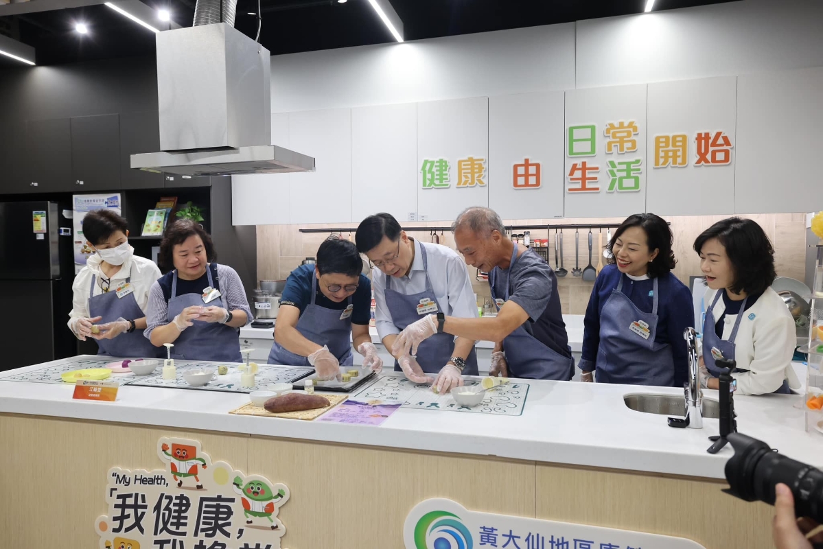 圖源:李家超fb。 李家超還與康健中心內的職員和長者製作健康月餅,笑稱自己是“小學生”,所做的月餅有50分。 李家超指,其中一位中心會員麗娟參加“慢性疾病共同治理先導計劃”(慢病共治計劃)配對家庭醫生後,被診斷出有高血壓。她說幸好發現得早,目前正積極控制健康飲食。中心職員表示,很多年紀不大、平日常做運動的人都不認為自己健康出現問題,直到參加了這個計劃,才知道身體已經出現警號。