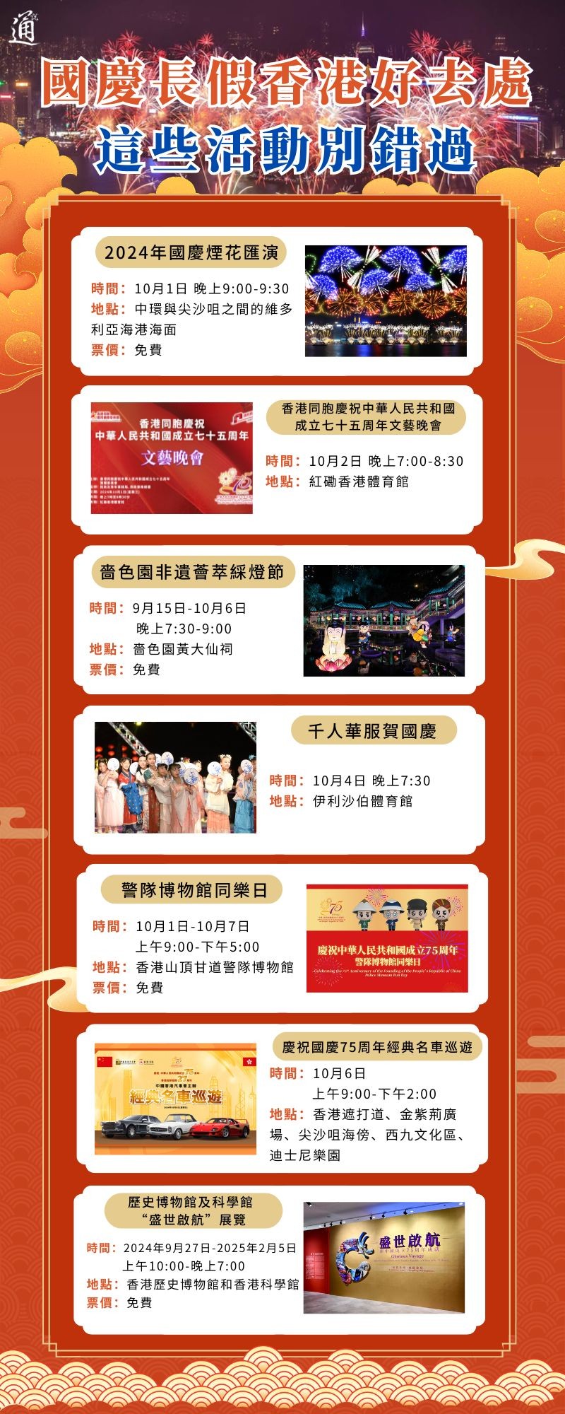 香港新聞網9月30日電 10月1日國慶將至,內地迎來國慶七日長假,為慶祝中華人民共和國成立75周年,香港推出各項慶祝活動和特別優惠“與眾同樂”,一起看國慶期間香港有哪些好去處,這些活動別錯過!  (完)