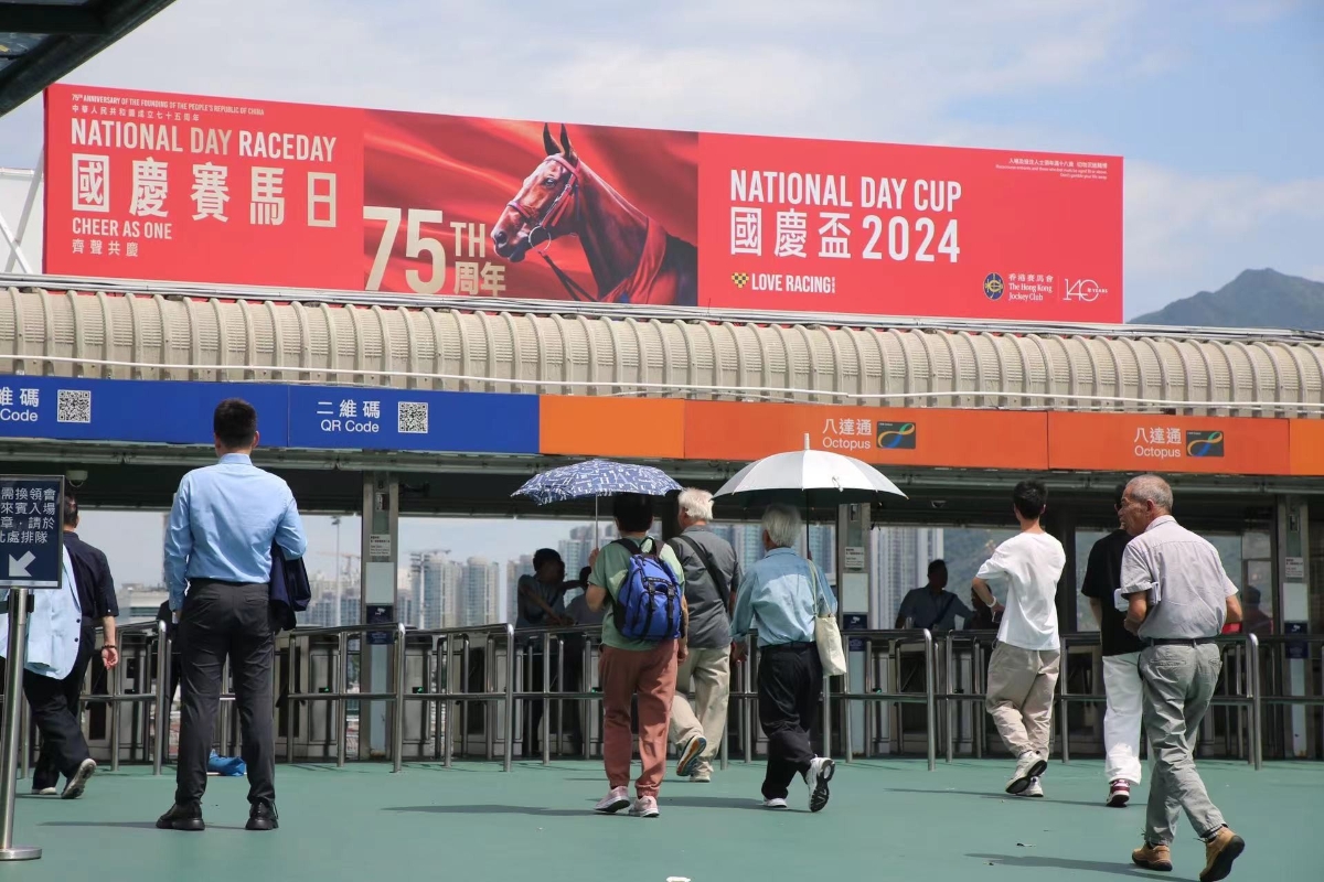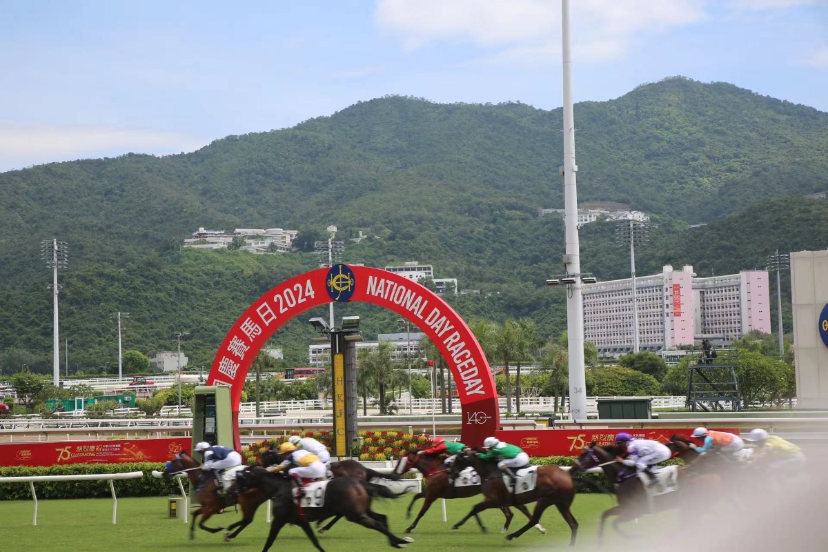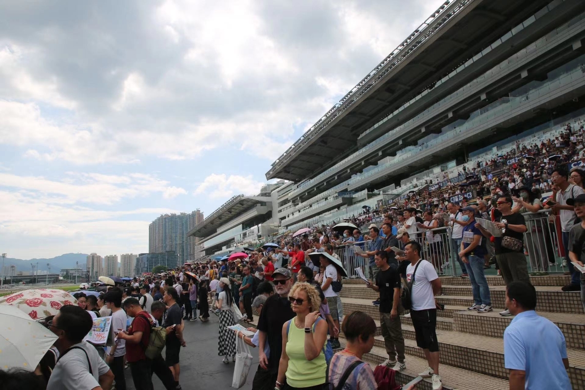 香港新聞網10月1日電 (記者 陳卓儀)為慶祝中華人民共和國成立75周年,香港賽馬會10月1日在沙田馬場舉辦國慶賽馬日,市民遊客免費入場、場內餐飲七五折優惠,吸引近25000名馬迷入場,包括5200名內地遊客,共賀祖國生日。