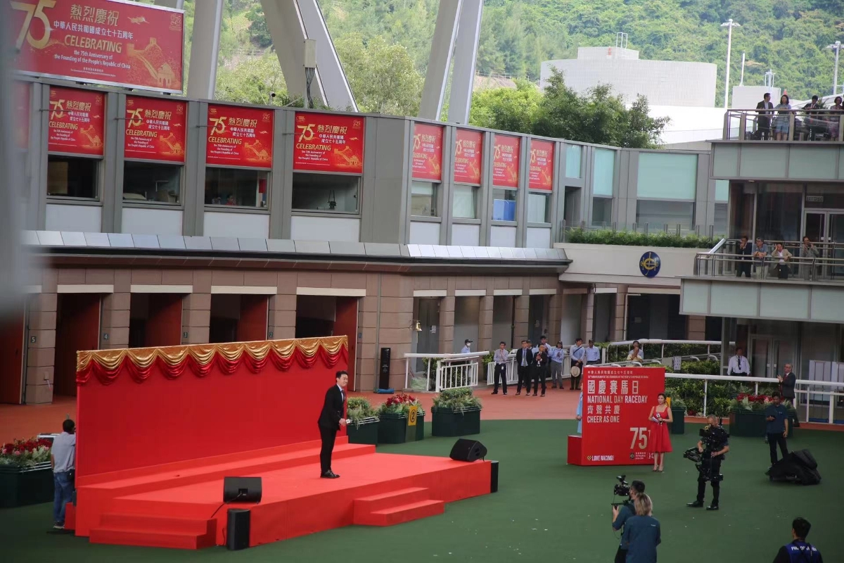 香港賽馬會圖片 當天中午十二點,豔陽高照,天朗氣清。沙田馬場一片紅色主題裝飾,處處可見寫有“75”字樣的標誌。 外交部駐香港特別行政區特派員公署特派員崔建春為開幕儀式主禮。現場擠滿公眾,鼓樂武術表演和男高音歌唱家張英席帶來的演出,熱了場子。隨後全場起立齊聲高唱國歌,不少市民遊客舉起相機,與場內的國旗區旗合影。 香港賽馬會每逢重大節慶日舉辦主題賽馬日,成為很多訪港遊客的打卡項目。中通社記者看到現場有不少年輕背包客,選擇在黃金周來香港旅遊。 廣州的黃小姐與三位閨蜜興奮與馬匹合影。她對記者表示,來香港旅遊輕巧方便,在網上還看到不少精彩活動介紹,第一站就選擇到馬場來,趕上了開幕儀式唱國歌的環節;“今天是祖國生日,我在香港聽到了國歌,很特別的體驗,現場很熱鬧,儀式感拉滿,香港太有國慶氛圍了!” 國慶日也是香港的公眾假期,沙田街坊喝完早茶,結伴看賽馬;也有外籍居港人士特地前來感受歡慶氛圍。 從事運輸行業的梁先生今年73歲,他點讚香港慶祝國慶的氛圍越來越熱鬧,聽著國歌響起,更能感受到祖國75年來日新月異的發展,感到非常自豪。他笑說,國運亨通,希望國慶日在馬場也能有好運連連。 國慶賽馬日,香港氣溫高達32攝氏度,公眾熱情未減,在草場旁一邊鼓掌一邊大喊“衝!”,熱鬧場面成為遊客最愛的視頻素材。 當天沙田馬場舉辦10場賽事,焦點賽事為第7場總獎金達420萬港元的“國慶盃”,最終由華人練馬師伍鵬志訓練、巴度策騎的“美麗第一”勝出。賽後,香港中聯辦秘書長王松苗頒獎予勝出馬主和練馬師。“國慶盃”於1999年設立,從2016/2017年度賽馬季起,獲升格為國際三級賽。賽事獎杯是一座手工制作的中國銀碗。