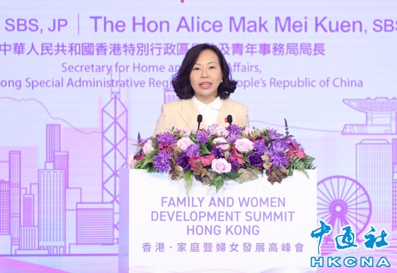 10月9日,首屆“香港·家庭暨婦女發展高峰會”在香港會展中心開幕。圖為民政及青年事務局局長麥美娟進行主題演講。香港中通社圖片 “家庭暨婦女發展高峰會”9日在香港舉行,麥美娟致辭時表示,民青局今年的工作以“家和萬事興”為主題,將於14日正式推出為期5年的全新家庭教育推廣計劃,旨在資助民間推行非牟利的家庭教育項目,進一步推廣家庭價值,增進家庭幸福及社會和諧。 她介紹,計劃將涵蓋各種與家庭相關的主題,如新手父母教育、親子教育、維繫家庭關係、傳承良好家風和家庭美德,以及其他與婚姻有關的題目等,以照顧不同家庭的需要。 麥美娟指,政府一直與婦女事務委員會緊密合作,去年6月成立婦女自強基金,每年撥款2000萬港元資助民間團體為婦女推行適切項目,支援婦女兼顧就業和家庭,在不同崗位盡展才華。自基金成立以來,已批准145個計劃。基金亦設有粵港澳大灣區交流計劃,鼓勵香港女性了解國情,把握大灣區機遇。(完) 【編輯:林曉惠】