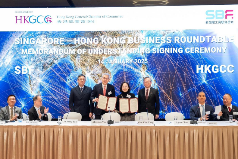 香港新聞網1月14日電 香港特區政府高級官員及企業領袖14日匯聚“新加坡—香港商務午餐會”,探索亞洲兩大經濟體的龐大商機和合作潛力。香港總商會(總商會)及新加坡工商聯合總會(SBF)主席在會上簽署了合作備忘錄。 是次會議由總商會及SBF共同舉辦。出席活動的貴賓包括新加坡副總理顏金勇、商務及經濟發展局局長丘應樺、總商會主席陳瑞娟、SBF主席林明彥,以及新加坡駐香港總領事王首毅。 多年來,兩地已達成多項雙邊協定,旨在加強經濟合作,特別是在貿易便利化、投資和技術夥伴關係方面。總商會主席陳瑞娟強調,香港與新加坡的關係十分重要。是次活動標誌着總商會與 SBF 第二次成功合作,雙方主席在會上簽署了合作備忘錄。 陳瑞娟表示,香港和新加坡作為多個重要領域的全球領袖,以及各自所在地區通往更廣泛市場的大門,兩地已建立了堅定、具建設性的夥伴關係。總商會將繼續支持香港企業拓展國際市場,而東盟會是未來重點。