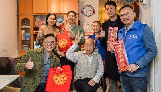 香港中通社1月27日電 臨近新春,香港特區政府主要官員27日到訪多區探訪市民,送上賀年福袋,分享節日歡樂。