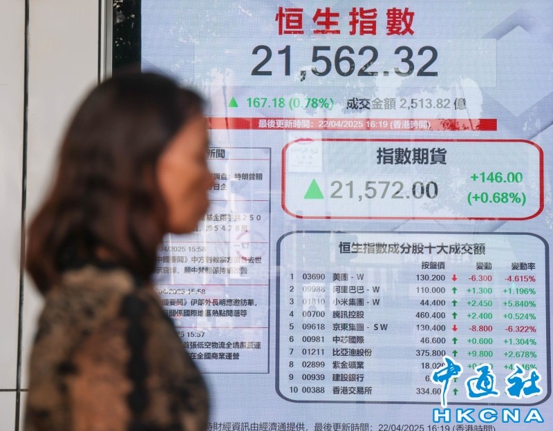 香港中通社圖片 國企指數升53點或0.7%,報7950點;科技指數升11點或0.2%,報4899點。 醫藥股急升,石藥升8.8%,為表現最好藍籌。翰森升7.2%;藥明康德升近5.6%;藥明生物升5.1%。京東和美團“外賣大戰”升級,當日兩者齊跌,美團跌4.6%,居成交榜第三位;京東跌6.3%,為表現最差藍籌。美國修訂對中國營運及建造船隻港口停泊費方案,太平洋航運升2.4%。 金價急升,再創新高。紐約期金曾升至每盎斯3500美元。赤峰黃金升8.6%;山東黃金升7.3%。其他金屬股亦造好,五礦資源升2.6%;江銅升3.5%。 永豐金融集團研究部指,市場不得不承受關稅貿易戰帶來的不明朗因素,對於美元資產的沽壓,真正避險的只有金價。美股短期難有起色已成定局,對於其他股市,即使部分可能換馬,但風險資產之間回報呈正相關,亦大概難倖免。 香港股票分析師協會副主席郭思治對中通社記者分析,美股21日大幅急跌,道指急跌971點至38170點,納指亦大幅急跌415點至15870點,但對港股並未做成明顯衝擊。大市雖略見反覆,但恒指仍然續於100天線(約21279點)及10天線(約20850點)之上,表示在維穩買盤支持下,大市走勢已具一定抗跌力。(完) 【編輯:馬華】