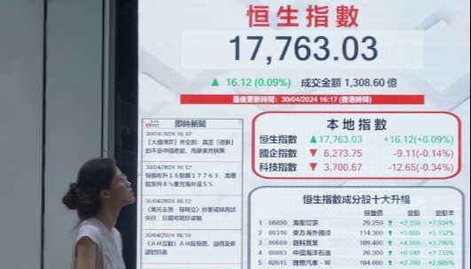 香港中通社圖片 國企指數升23點或0.3%,報8080點;科技指數升7點或0.1%,收報4982點。 周大福公佈截至今年3月底,第四財季零售值按年跌11.6%,當日股價跌4.2%,為表現最差藍籌;百度發布文心大模型4.5 Turbo及X1 Turbo,當日股價升3.9%,為表現最好藍籌。晶片股下跌,中芯及華虹半導體分別跌近3%及逾6%。美團升0.47%;京東跌0.3%;小米跌1%。 美股24日晚上再大幅上升,道指急升486點至40093點,納指亦大升457點至17166點,港股25早上稍做好。香港股票分析師協會副主席郭思治分析數據時指,但由於交投略見偏疏,在動力不配之下,大市未能快步而上,市內觀望氣氛因而漸濃。 永豐金融集團研究部指出,美方愈是欲蓋彌彰,更反映出中方立場清晰,沒有會談可言,當然更沒有會談成果可言。投資者需小心,隔晚美股的向上,或多或少只是憧憬美聯儲減息,跟關稅是否談得攏無關。近日新聞消息眾多,還是降槓桿倉位風險水平為上。 (完) 【編輯:馬華】
