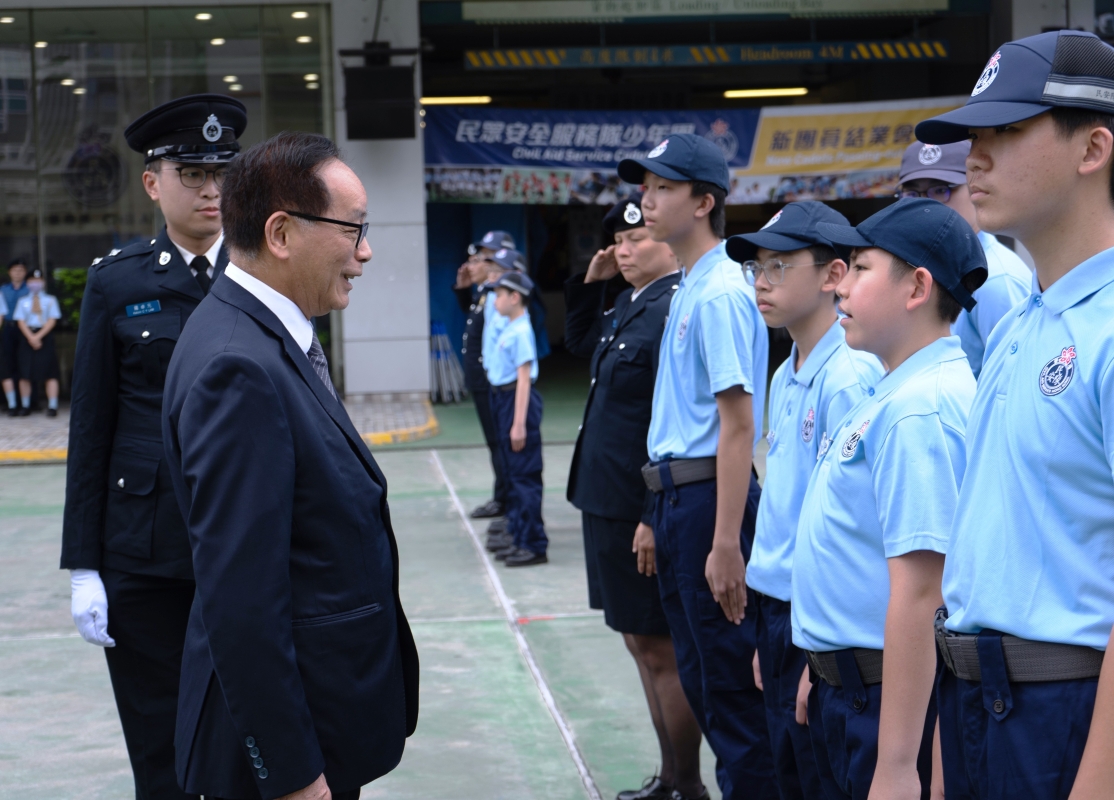 香港新聞網5月3日電 香港民眾安全服務隊(民安隊)少年團3日在民安隊總部舉行第147屆新團員結業會操,並邀得前港區全國人大代表葉國謙擔任檢閱官。