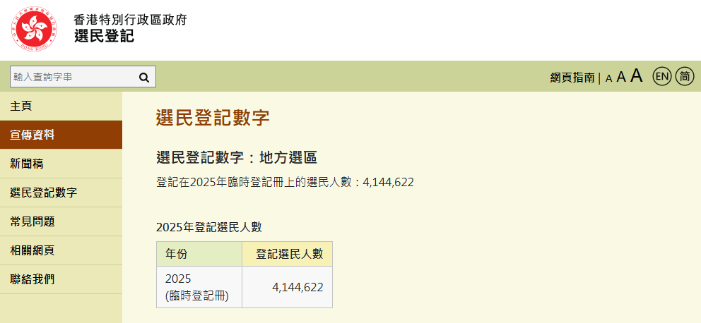 香港地方選區臨時選民登記冊出爐 載有約414萬選民分享到: