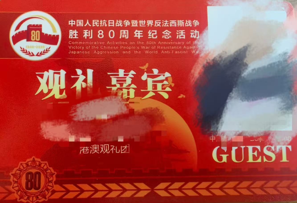 香港新聞網9月2日電 (記者 陳卓儀)中國人民抗日戰爭暨世界反法西斯戰爭勝利80周年紀念活動即將在9月3日展開,香港觀禮團陸續抵達北京,曬出觀禮嘉賓證。 香港中通社記者在接待觀禮團的酒店看到,現場特地為前來觀禮的港澳團設置用餐區。
