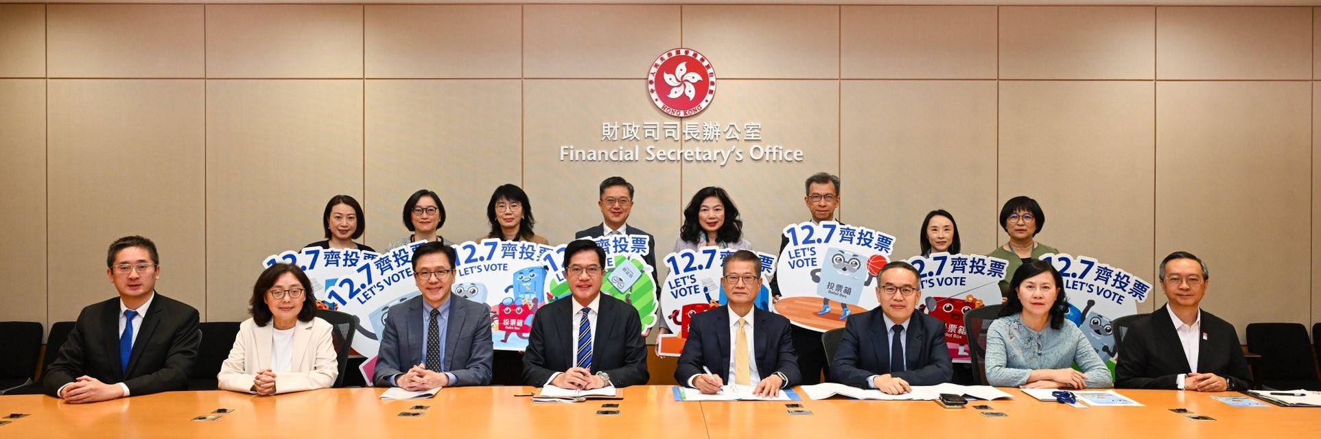 圖源:陳茂波fb 特區政府財政司司長陳茂波6日聯同財政司副司長及分管的六個政策局局長、署理局長和常任秘書長,舉行工作會議,部署加強選舉宣傳活動,鼓勵更多相關業界人士和市民踴躍投票。六個相關政策局轄下有30多個部門,陳茂波指,將善用每個政策局和部門的力量和專業網絡,為選舉推動更廣泛的接觸、更深入清晰的宣傳。