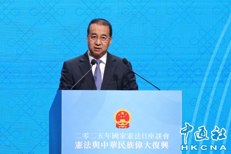 圖為香港中聯辦副主任劉光源致辭。香港中通社圖片 劉光源指出,前不久召開的中共二十屆四中全會,對未來一個時期國家經濟社會發展作出了頂層設計和戰略謀劃。全會就“促進香港、澳門長期繁榮穩定”作出專門部署,特別強調要提升港澳依法治理效能。 他分享三點看法,憲法為實現中華民族偉大復興提供了法治保障;憲法為香港融入民族復興壯闊征程奠定了法律基礎;憲法為香港在民族復興偉業中發揮所長賦予了制度優勢。 劉光源表示,新界大埔宏福苑發生火災,造成重大人員傷亡。中央高度重視、殷切關懷,李家超行政長官和特區政府有力有效應對處置。面對這場突如其來的災難,從政府到民間、從香港到內地,迅速匯聚起守望相助、共渡時艱的磅礴力量。 他表示,在這危難時刻,反中亂港分子和別有用心者編造謊言、顛倒是非、煽動對立,企圖以災亂港。這種險惡用心和卑劣行徑,必受社會公義的嚴厲斥責,必受法律的堅決懲處!(完) 【編輯:林曉惠】