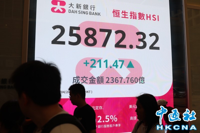 香港中通社4月14日電(記者 徐嘉儀)受美股上升刺激,港股14日高開,恒生指數收市報25872點,升211點。大市成交額為2367億港元。
