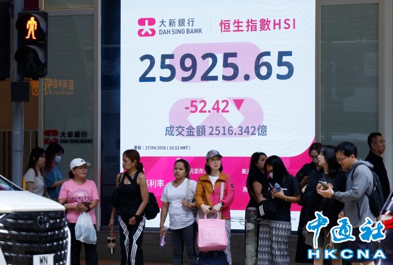 香港中通社4月27日電(記者 梁嘉軒)港股27日表現反覆,恒指全日收25925點,跌52點或0.2%。大市成交額2516.34億元(港元,下同)。資金重新聚焦於人工智能(AI)相關需求,晶片股向好。