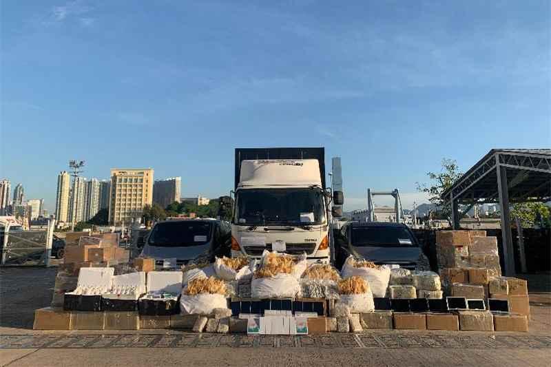 圖示檢獲的懷疑走私貨物和被扣查的三輛懷疑涉案車輛。 13日凌晨,香港海關與水警展開聯合反走私行動,於赤鱲角發現數名可疑男子,他們將懷疑走私物品從貨車搬運到客貨車,其後駛至東涌一處岸邊,再搬運上一艘快艇。 行動中,海關人員拘捕4名懷疑涉案男子,扣查3輛懷疑涉案車輛,包括一輛貨車和兩輛客貨車,並於車上檢獲一批懷疑走私貨物,包括花膠、燕窩、智能電話、平板電腦和獸藥產品。 海關發言人表示,將繼續嚴厲打擊海上走私活動,積極運用風險管理及情報主導執法策略,適時開展針對性的反走私行動,並與本地及海外執法機關加強情報交流,全力遏止相關活動。 發言人重申,走私屬嚴重罪行,根據《進出口條例》,任何人輸入或輸出未列艙單貨物,一經定罪,最高可被判罰款200萬元及監禁7年。 【編輯:丘志彬】