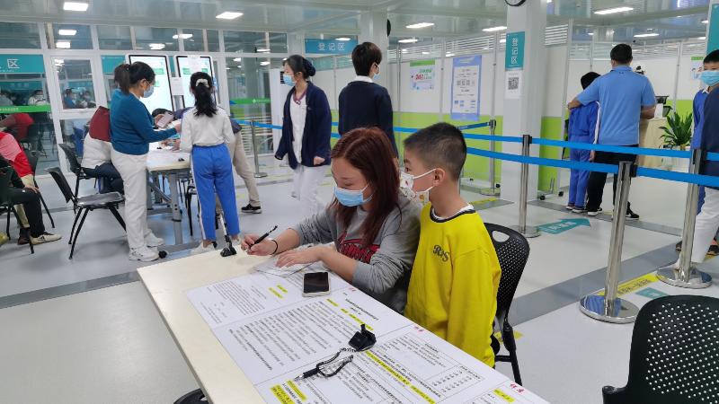 11月30日,深圳正式啟動3-11歲港澳兒童新冠疫苗接種工作。就讀於香港順德聯誼總會何日東小學五年級的港生梁芷菁,在媽媽的陪伴下一早就來到了港大深圳醫院新冠疫苗接種點等候。
