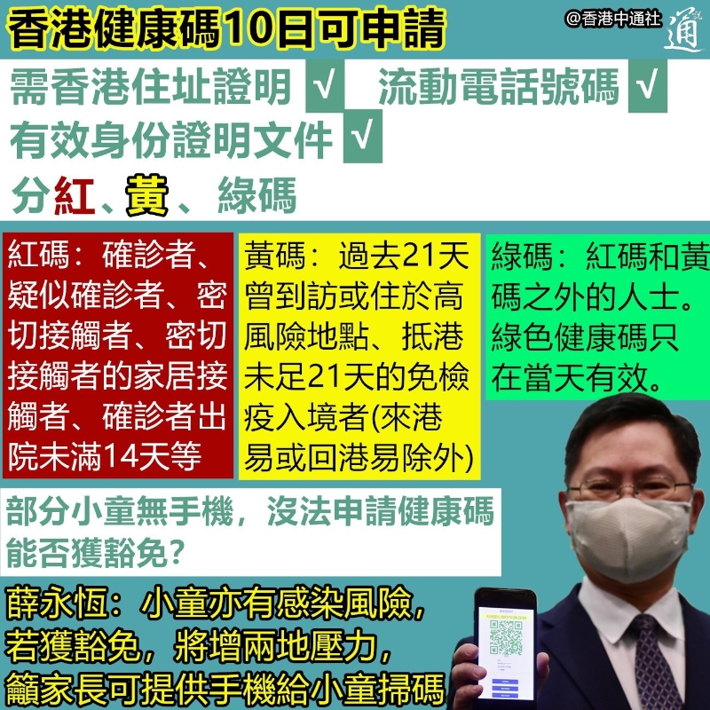 香港新聞網12月10日電 香港健康碼今早(10日)9時起開放申請,市民可在網上作實名登記註冊,可將過去31日儲存於“安心出行”App的出行記錄上載至港康碼系統,以獲取日後過關必備的“綠碼”。申請港康碼需要準備3大文件,共6個步驟便可完成。據了解,港府正爭取更多每日名額,但初步料每日只有1000個,有3類人士可優先。