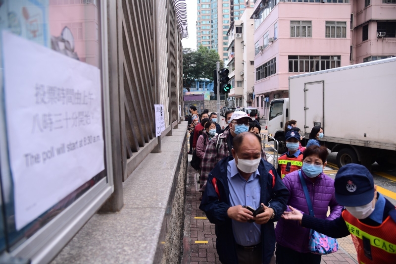 香港新聞網12月19日電 香港立法會選舉12月19日上午8時半開始投票,全港設逾600個投票站。當日早晨,在天光道24號地下獻主會聖馬善樂小學的投票站,大批市民有序排隊進站投票,現場秩序井然。