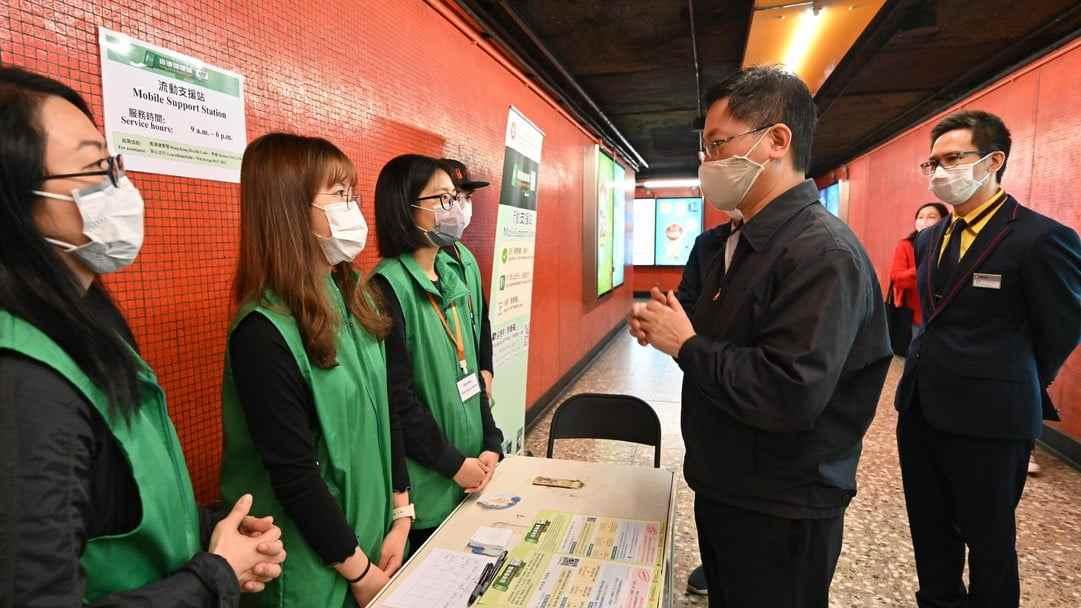 創新及科技局局長薛永恒(右二)視察設於北角港鐵站的“港康碼”流動支援站。來源:政府新聞處 香港“港康碼”系統自本月10日起開放,特區政府已安排外展隊,首階段在全港10個港鐵站內,每日由上午9時至下午6時,協助有需要的市民開啟“港康碼”戶口,以及下載或更新“安心出行”。下一階段流動支援站會擴至25個港鐵站,包括上水、大圍、紅磡、九龍塘、黃大仙和灣仔等人流量較大的地鐵站。 香港特區政府創新及科技局局長薛永恒25日走訪多個設於港鐵站的流動支援站,了解外展隊如何協助有需要的市民辦理申請“港康碼”相關手續,並與市民交談,聽取他們對外展隊的意見,以期推進“港康碼”工作更順暢有序,同時促進社會關愛共融。 薛永恒說,明白有些市民對數碼科技感到陌生,或需有人從旁協助,從而學習掌握有關技巧。不同政策局和部門同心協力做好這個工作,動員社區力量,發揮守望相助、同舟共濟的香港精神,同心抗疫。(完) 【編輯:凌玉辉】