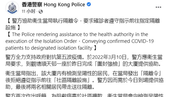 香港新聞網1月20日電 香港特區政府昨晚(19日)先後圍封3幢樓宇強制檢測,其中觀塘凱滙第3座的強檢行動今早(20日)完成,約830名居民接受檢測,當中沒有發現陽性個案。